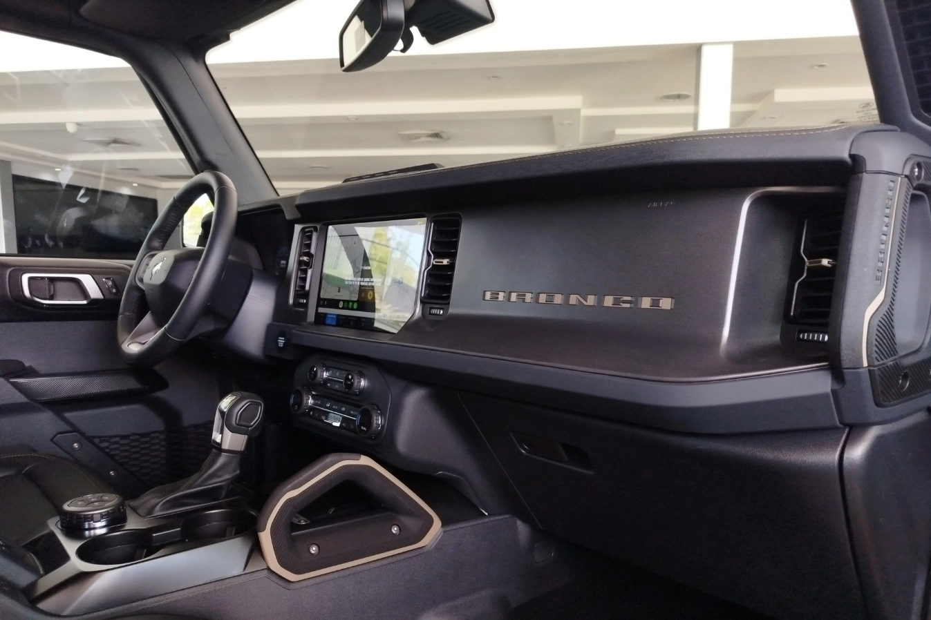 La nueva camioneta Ford Bronco Badlands 4×4 combina robustez y funcionalidad con características innovadoras. Está equipada con un panel digital de instrumentos de 12”, diseñado para mostrar información de manera práctica y dinámica. En su consola central, encontrarás el sistema SYNC® 4 con una pantalla táctil de 12”, desde la cual puedes planificar tu viaje, realizar llamadas, verificar el estado de tu Bronco y disfrutar de tu música favorita gracias al audio premium B&O (Bang & Olufsen) con 12 parlantes.